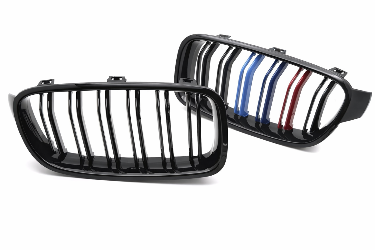 BMW E92/E93 LCI 2010-2013 - Predná maska ​​double bar čierna lesklá s trikolórou