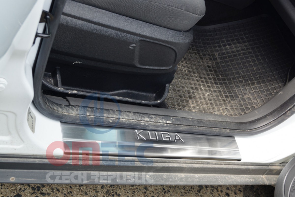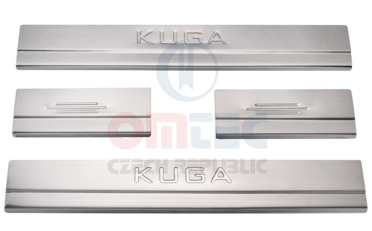 - Sada pasuje na modely Kuga I 2008-2012 - Jedná sa o kompletné 4-dielnu sadu nástupných prahových líšt - Prevedenie RS6 Brushed - Vyrobené z masívnej NEREZ OCELE - Žiadny lacný pochrómovaný plast - Super silná obojstranná páska - Páska už predinštalovaná - Lišty sú razené pomocou unikátnej formy priamo na tento model S-Maxu - Tzn. žiadne ručné opracovávanie podľa šablóny - Jednoduchá inštalácia
