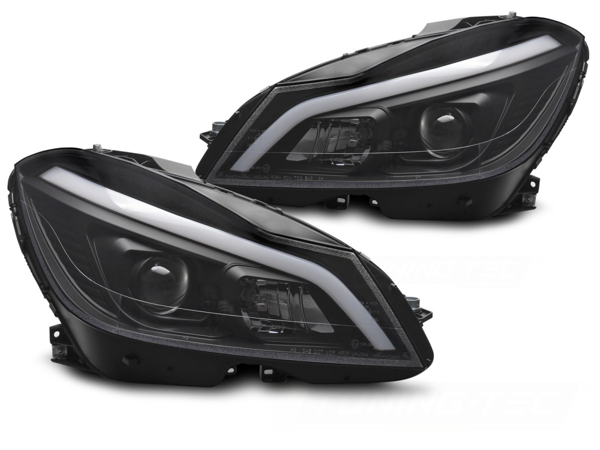 Mercedes W204 2011-2014 - Predné svetlá TUBE LED čierna SEQ DRL