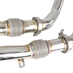Downpipe je vyrobená z vysoko kvalitnej nerezovej ocele s hrúbkou steny 1,5 mm, čo zaručuje mimoriadnu pevnosť, tepelnú odolnosť a dlhú životnosť. Každý kus je CNC opracovaný pre dokonalú presnosť, 100% proces výroby a perfektné dosadnutie na továrenské body.