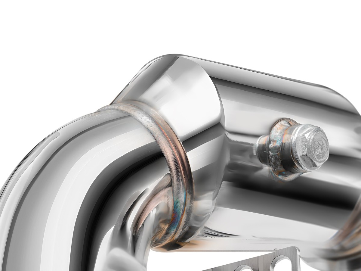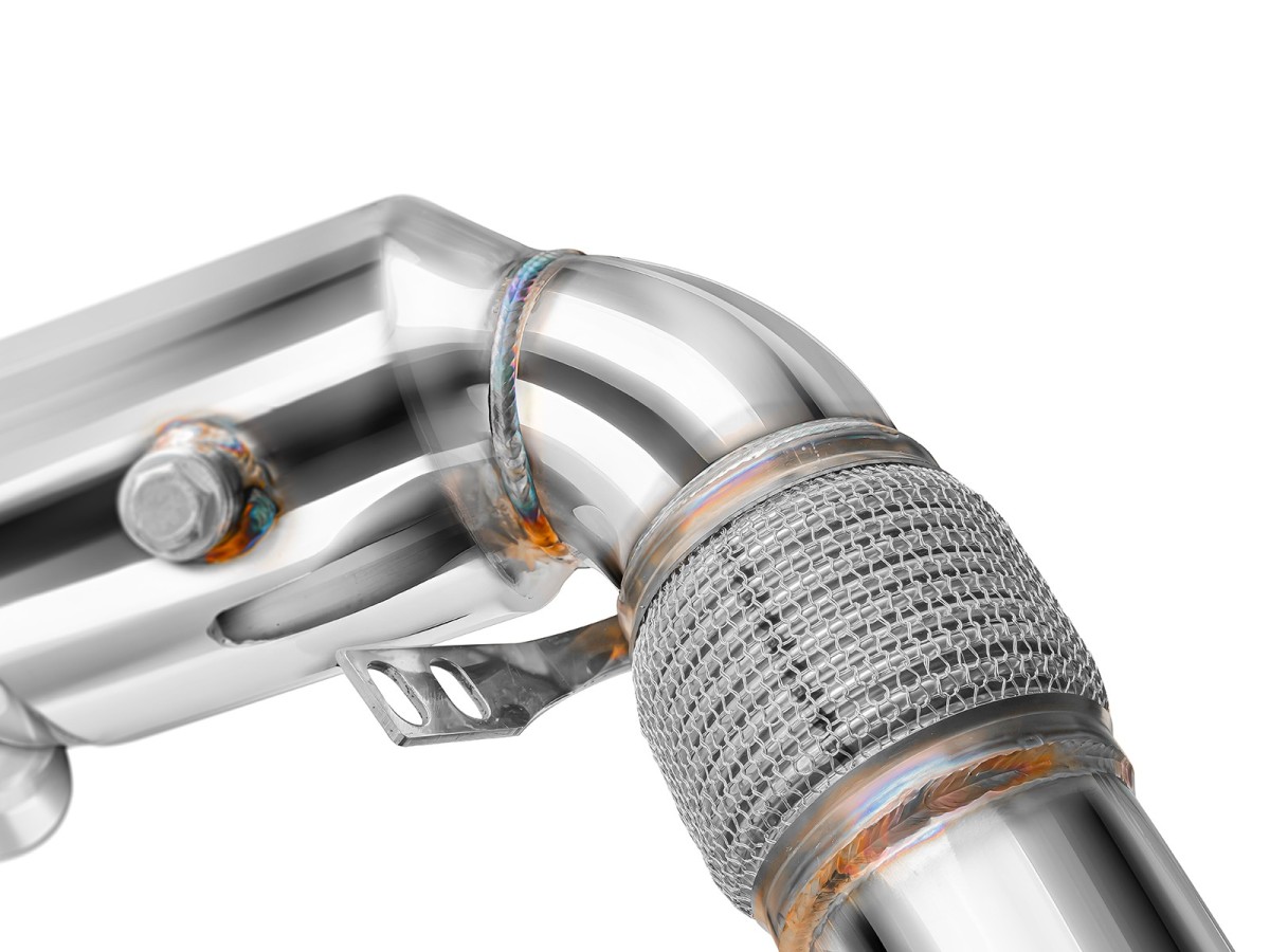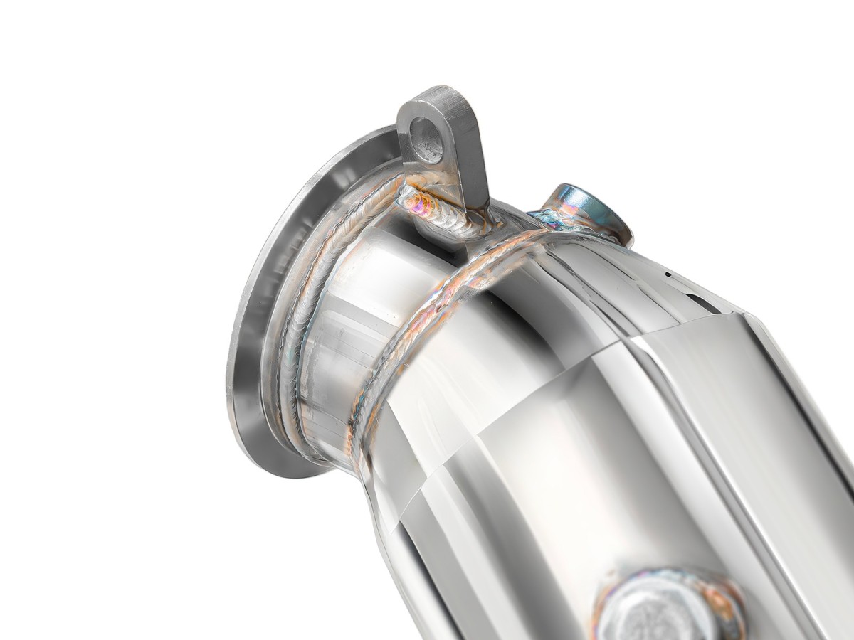 Downpipe je vyrobená z vysoko kvalitnej nerezovej ocele s hrúbkou steny 1,5 mm, čo zaručuje mimoriadnu pevnosť, tepelnú odolnosť a dlhú životnosť. Každý kus je CNC opracovaný pre dokonalú presnosť, 100% proces výroby a perfektné dosadnutie na továrenské body.
