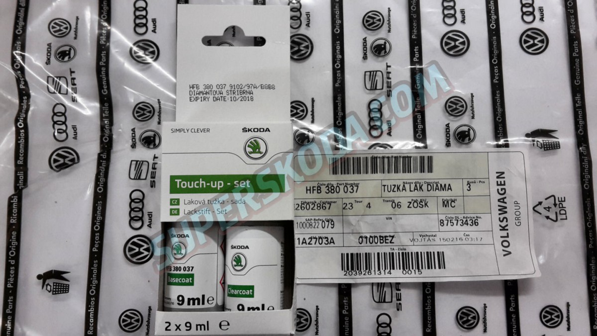 Škoda auto - opravná sada pre lak DIAMANT SILVER (9102,F7T,1B1B)