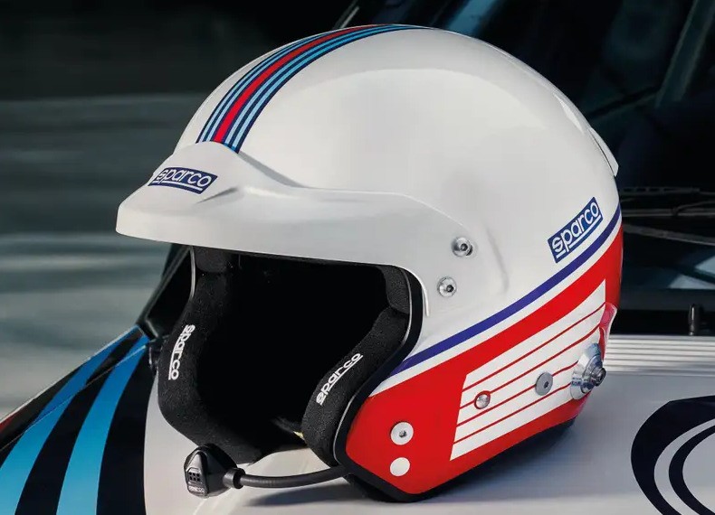 Sparco helma AIR PRE RJ-5i Martini Racing, s interkomom a homologáciou FIA, veľkosť XL